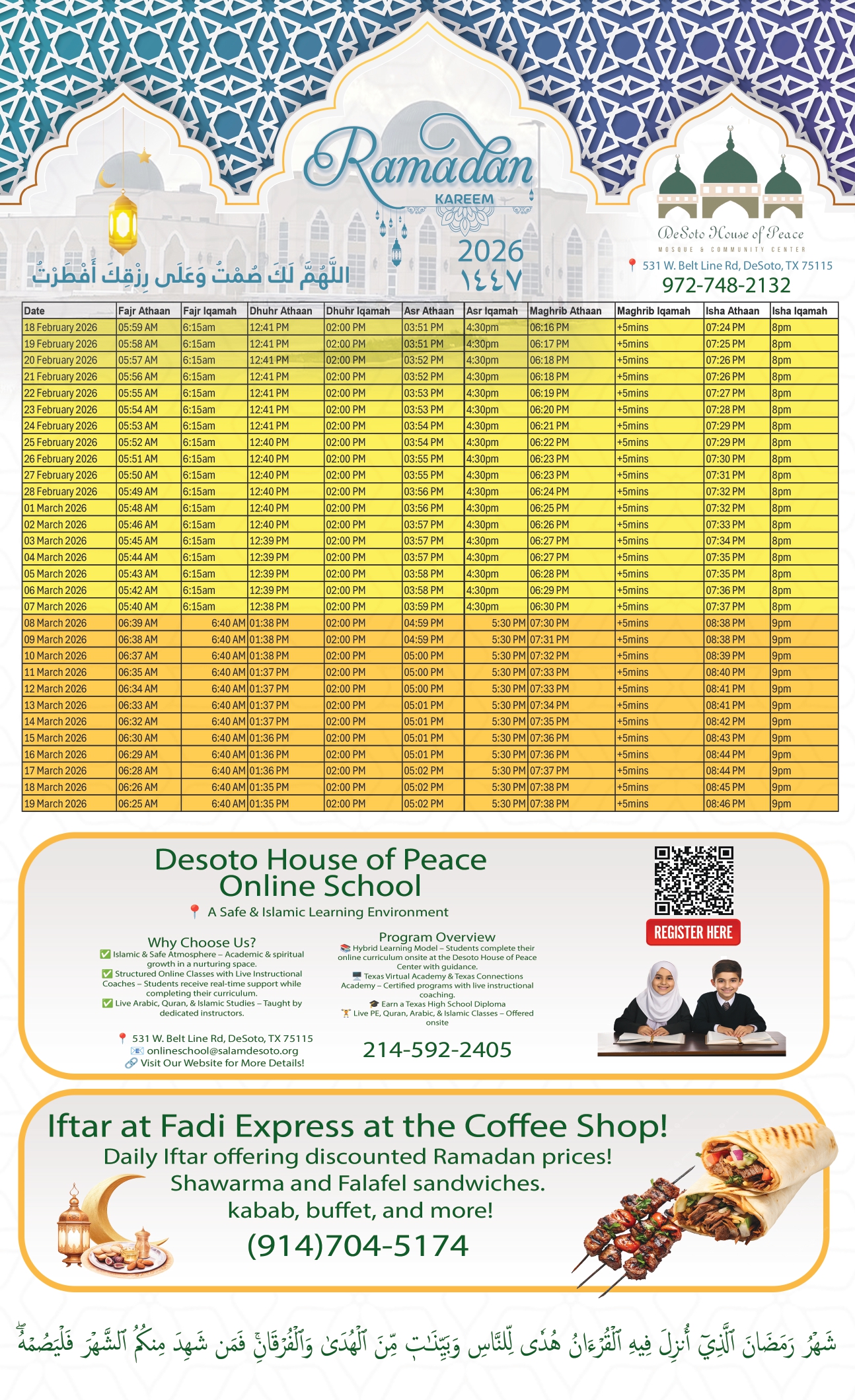 Suhoor & Iftar Timetable 2026